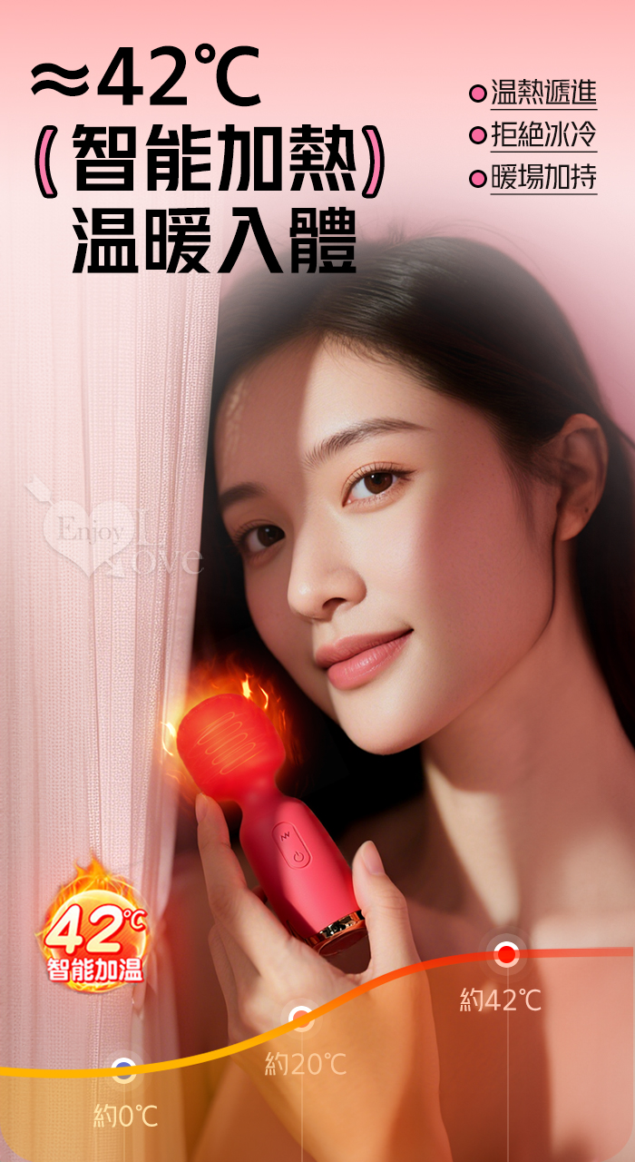 ROSELEX 勞樂斯 ‧ NEW全新升級~妙巢爆震AV棒 10調頻/智能加溫/小巧随身360度彎曲AV棒﹝櫻花粉﹞