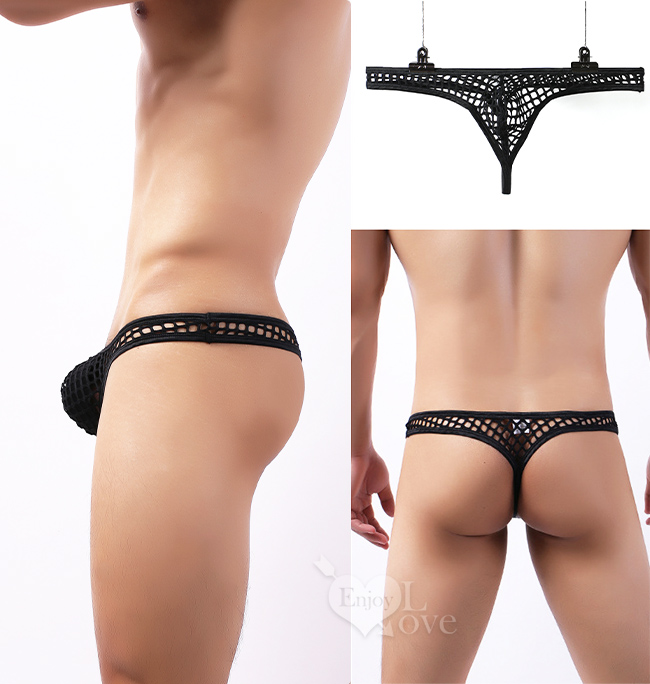 | 《 Enjoy Love 》性感半透大網孔男士丁字褲 - 黑﹝S﹞