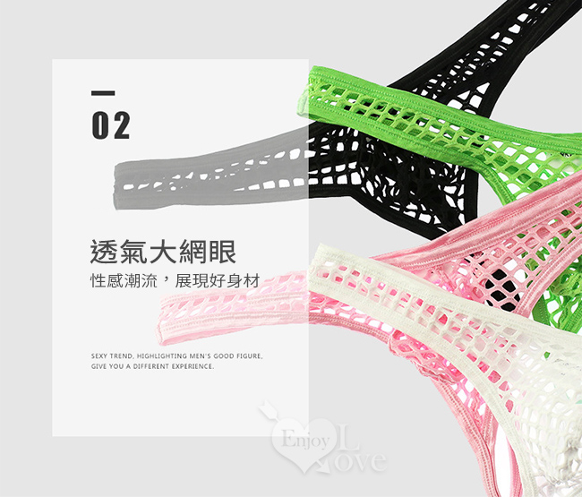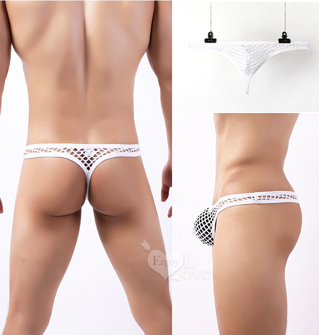 《 Enjoy Love 》性感半透大網孔男士丁字褲 - 白﹝XL﹞