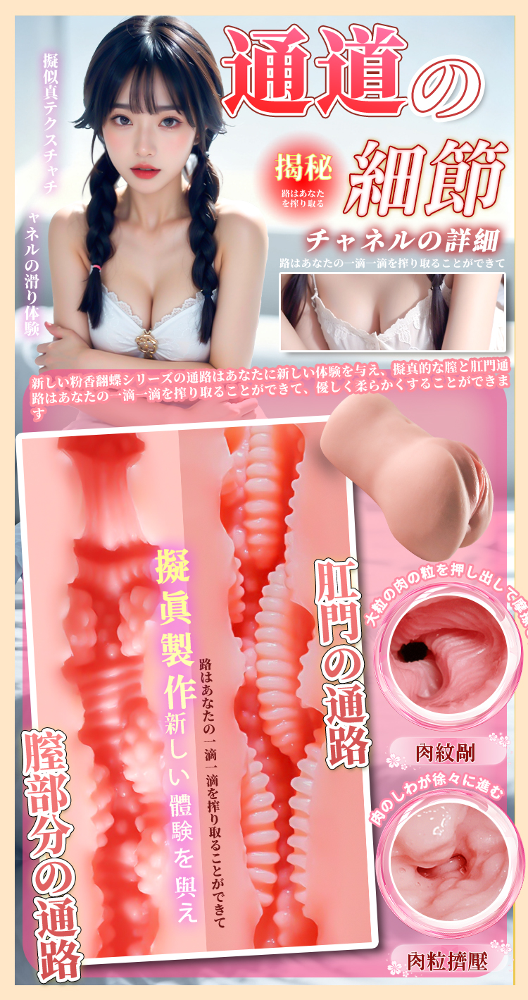 粉香翻蝶 厚重美尻擬真肌膚肉粒雙穴自慰器