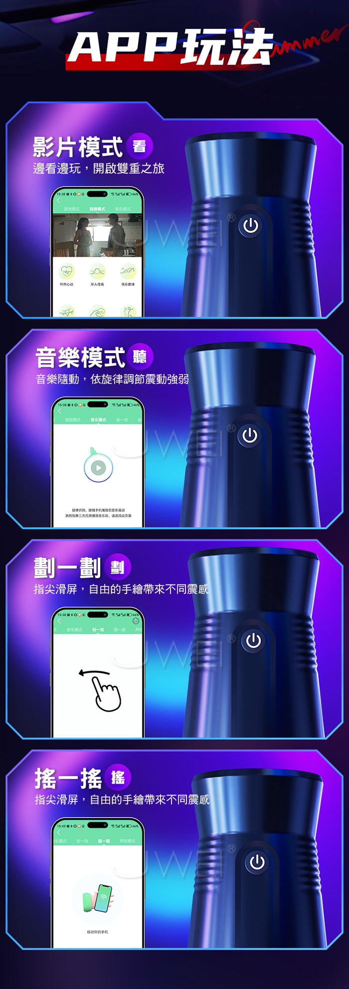真空夾震,360度環繞舒爽,空氣負壓產生夾縮,真實緊緻包裹 擬真厚肉內膽,越深入越驚喜,軟糯酥麻入魂,此中快樂 無法言語~ 脉衝按摩,9檔震動調節,感受肉感蜜道從淺到深的多重快感 產品規格 ■尺寸:大小詳如圖片標示 ■材質:TPE+ABS ■特點:9頻震動、APP智控