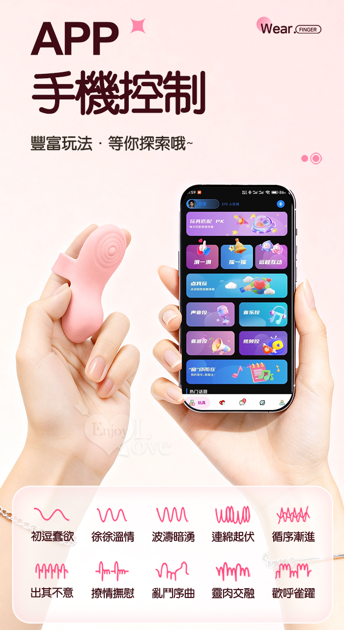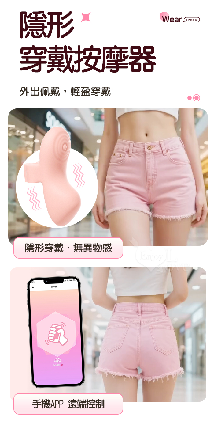 | ROSELEX 勞樂斯 ‧快樂指尖 ‧ 10頻深層精準震顫陰蒂刺激調情自慰兩相宜穿戴按摩器 - 可手機APP遙控﹝具兩種操控模式﹞粉