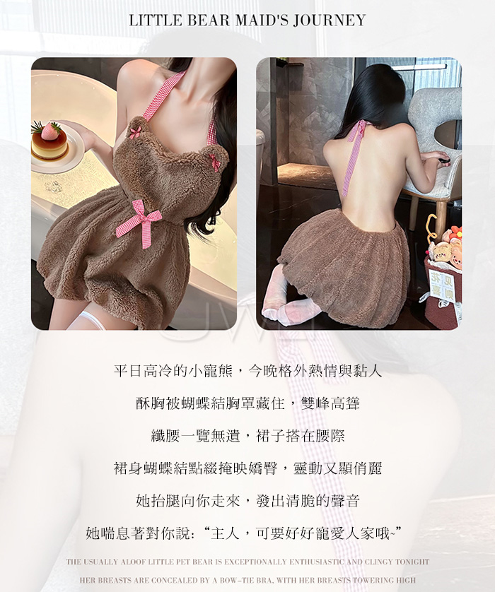 | 小熊女僕.呆萌酥甜蝴蝶結繫帶小熊絨毛掛脖裙