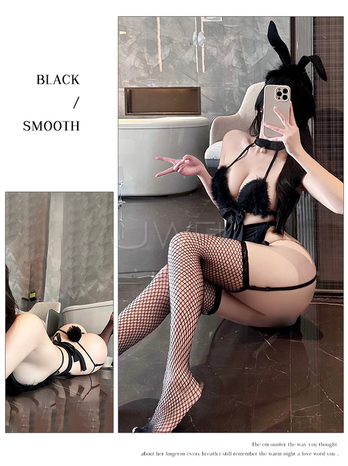 ►您現在的位置:首頁>誘愛小兔.萌感毛絨文胸毛條小圍裙三點式兔女僕套裝【髮箍+胸罩+圍裙+T褲+可拆卸尾巴+可拆卸吊襪帶*4-黑色】