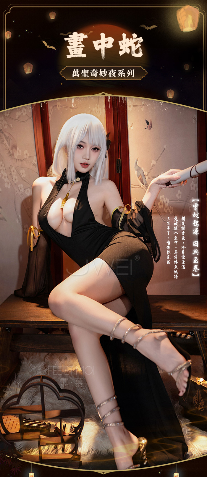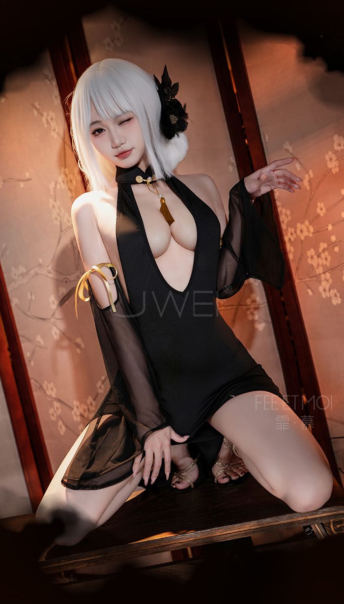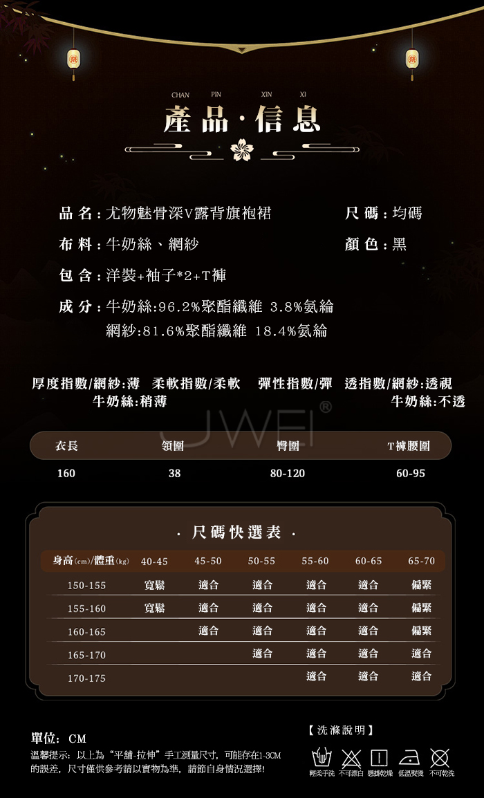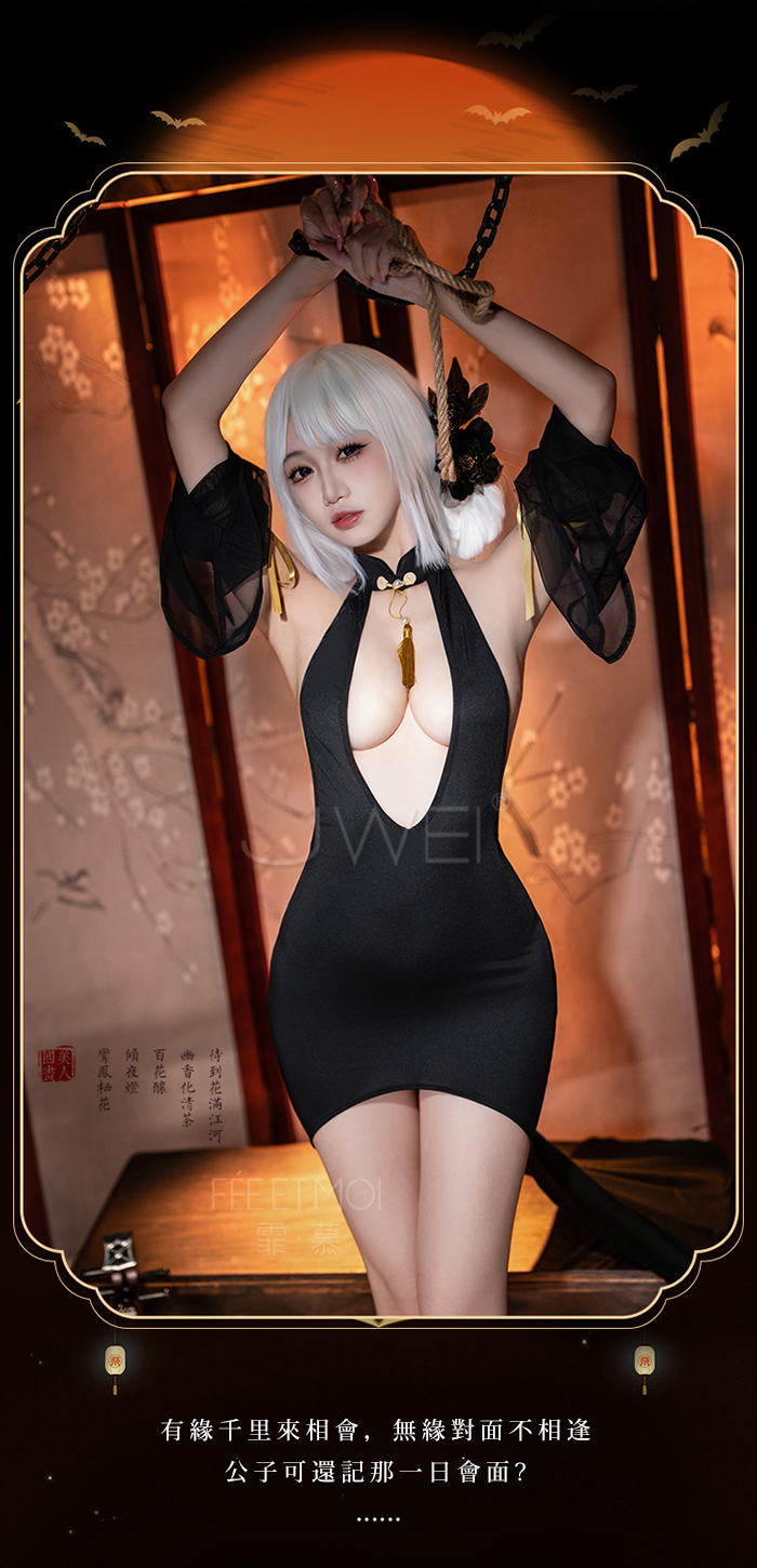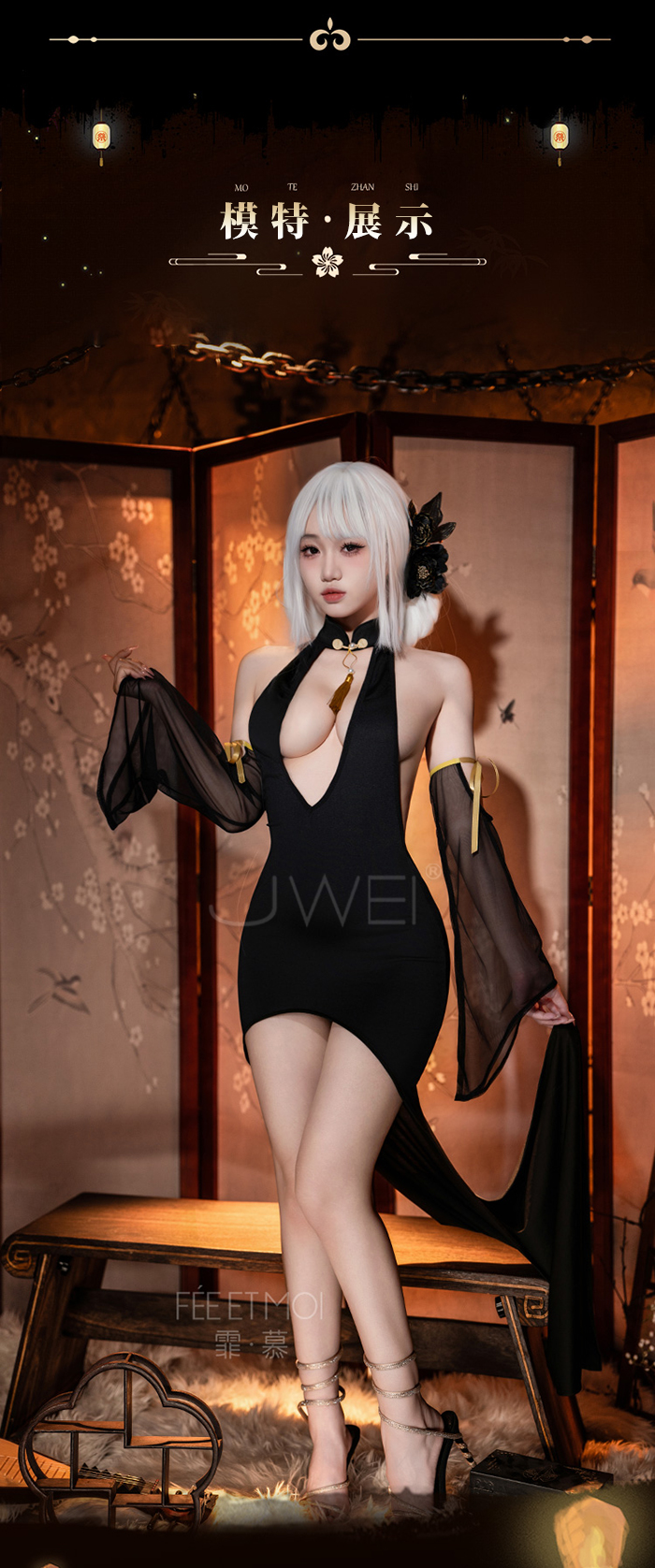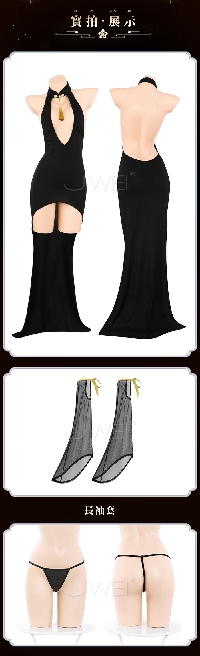 首頁>尤物魅骨.深V性感露溝美背分割飄逸長裙襬旗袍【連身裙+袖子*2+T褲】