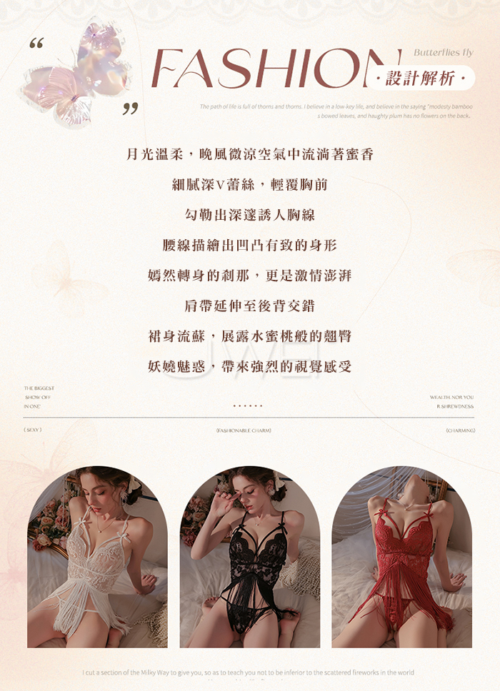 ►您現在的位置:首頁>輕舞搖曳.網眼蕾絲深V誘惑流蘇裙襬露臀睡裙【睡裙+T褲】酒紅
