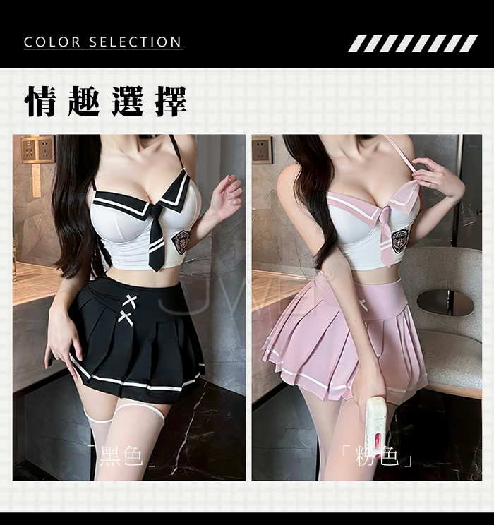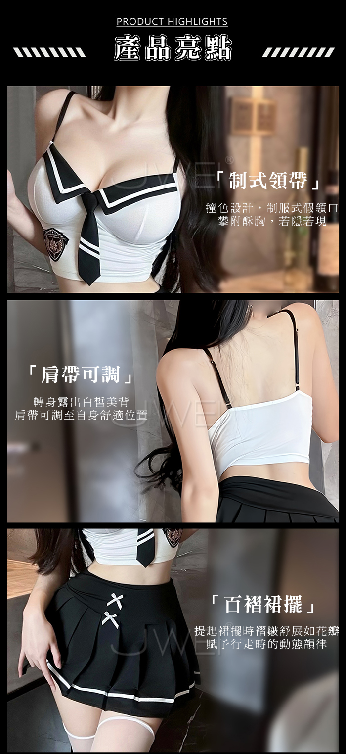 | 甜校迷境.純愛撞色制式領帶白褶裙學院系cos套裝【上衣+裙子】黑色