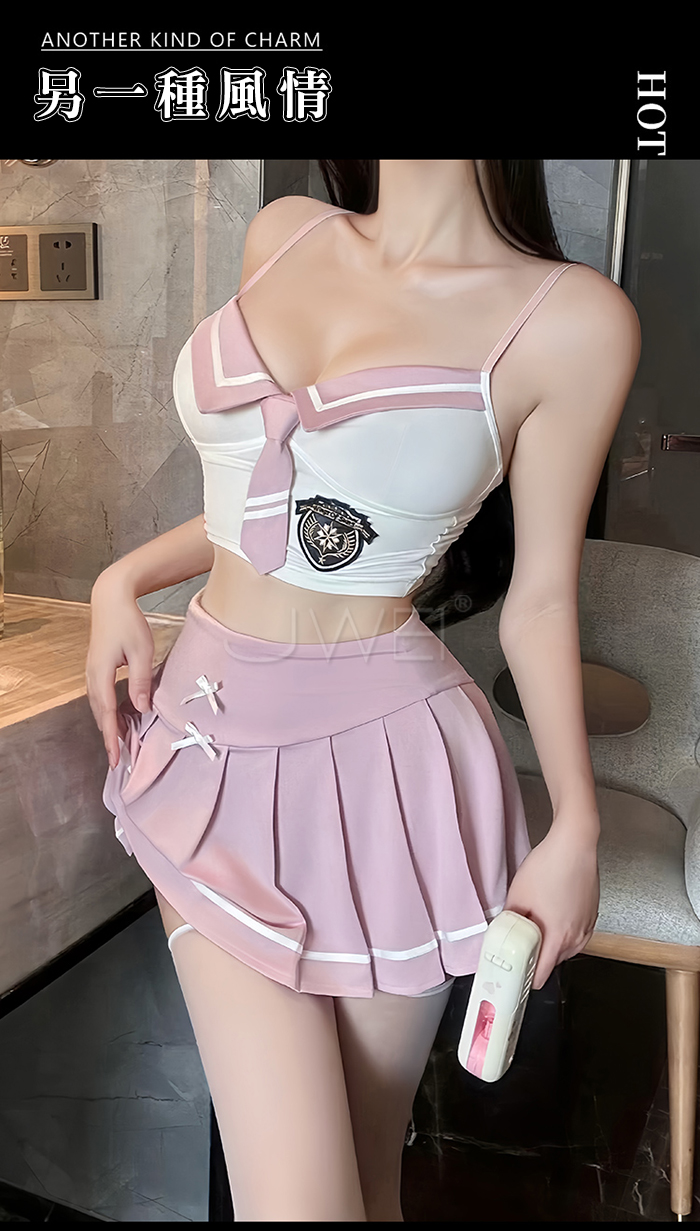 ►您現在的位置:首頁>甜校迷境.純愛撞色制式領帶白褶裙學院系cos套裝【上衣+裙子】粉色