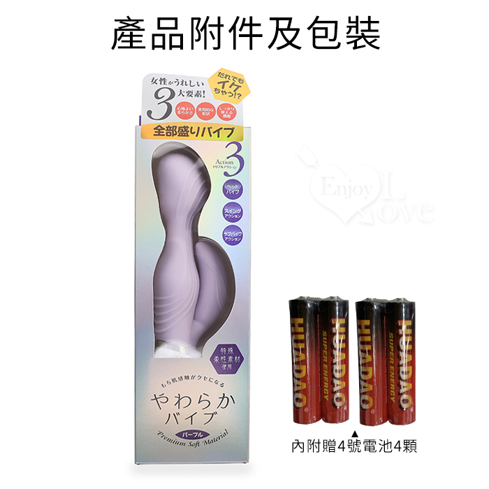 日本NPG.やわらかバイブ 肌感触 12頻頭震+7搖擺+10副震多功能柔和按摩棒-紫