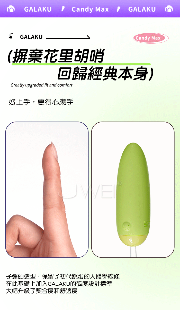 ►您現在的位置:首頁>GALAKU.跳跳糖 10頻爆跳穿透強震 深肌快感 加厚矽膠變頻跳蛋【AI智控款-紫色】