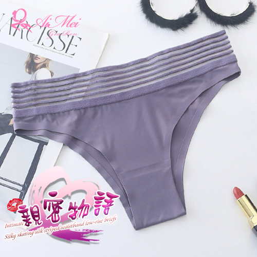 ►您現在的位置:首頁>親密物語!絲滑冰絲條紋褲頭低腰三角褲﹝藕紫﹞