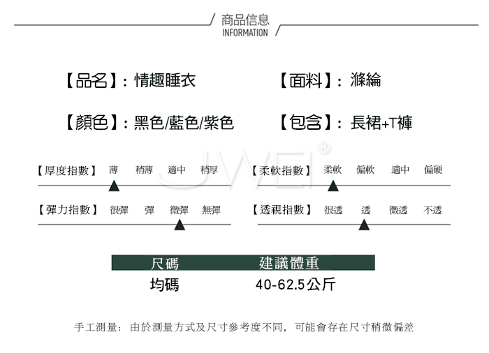 2.基於保障消費者個人衛生,情趣衣物類恕不接受退換貨,如為商品本身暇疵,接受三日內換貨,請勿試穿。